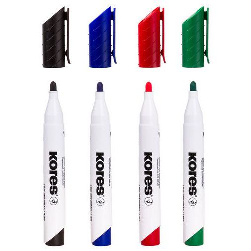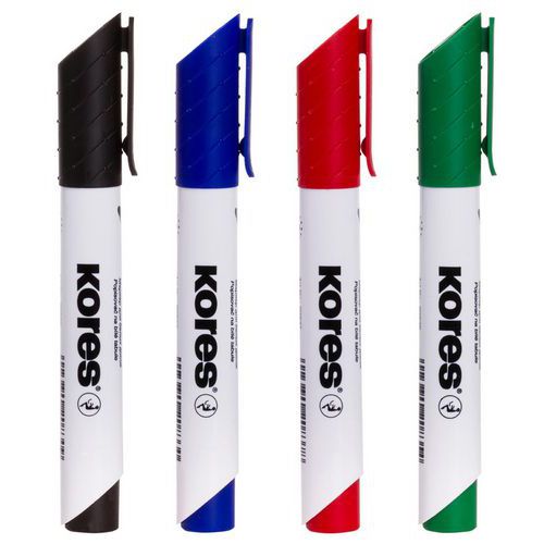- Rotuladores para pizarra blanca KORES XW1 con punta redonda de 3 mm.