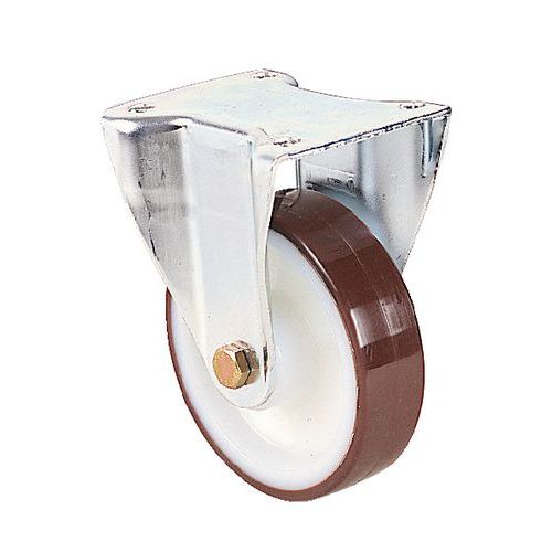 - Rueda fija con soporte de chapa de acero embutido grueso adecuada para cargas medias.
