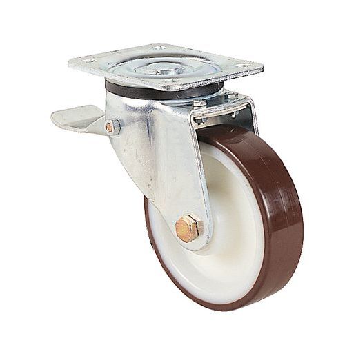 Rueda pivotante con pletina y freno - Carga de 200 a 600 kg