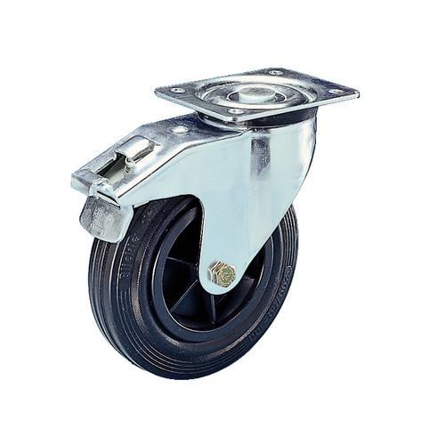 Rueda pivotante con pletina y freno - Carga de 50 a 295 kg - Negra