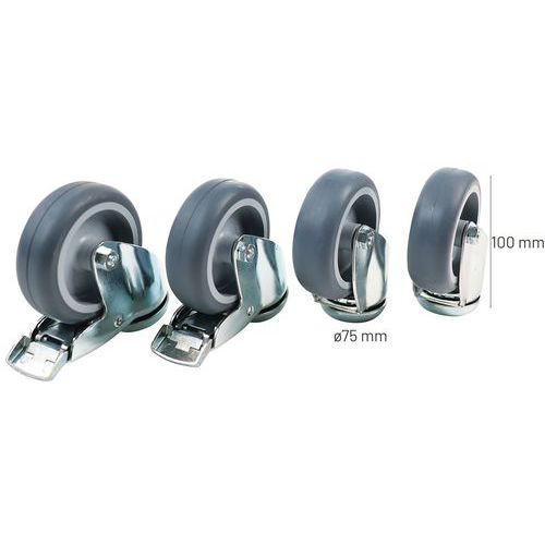 | Nombre del producto | Ruedas para pizarra basculante móvil, Tipo: Rueda, Altura total: 100 mm, Ø: 75 mm |
