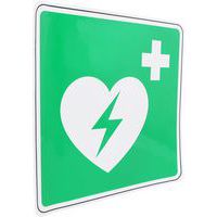 - Con esta señal de emergencia, facilite la intervención en menos tiempo indicando de forma visible la presencia de un desfibrilador.