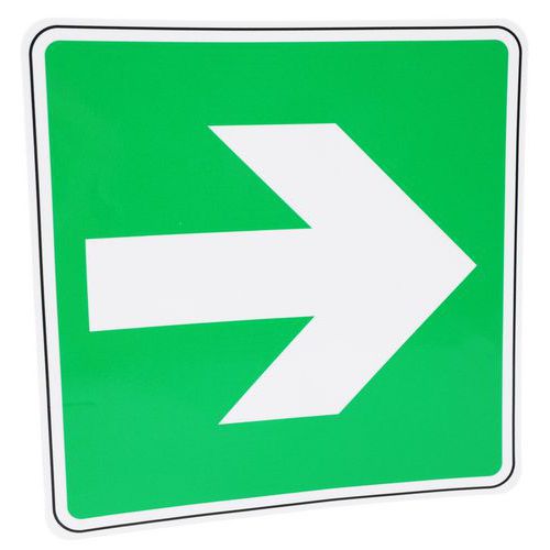 | Nombre del producto | Señal de evacuación con flecha a la derecha en el ángulo derecho adhesiva - Manutan Expert |