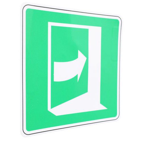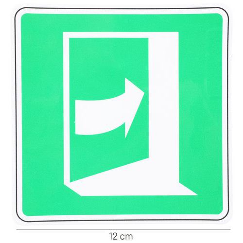 | Nombre del producto | Señal de evacuación puerta de apertura a la derecha, Adhesivo: sí, Rígido: no, Panel forma: Cuadrado |