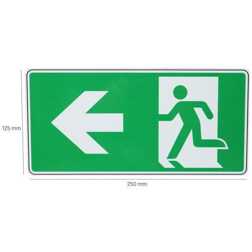 | Nombre del producto | Señal de salida de emergencia con flecha a la izquierda de aluminio, Adhesivo: no, Rígido: sí |