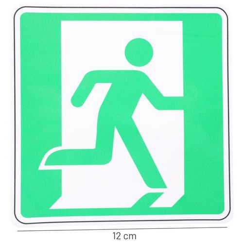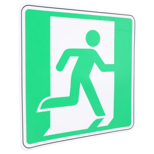 | Nombre del producto | Señal de salida de emergencia derecha adhesiva, Adhesivo: sí, Rígido: no, Panel forma: Cuadrado |