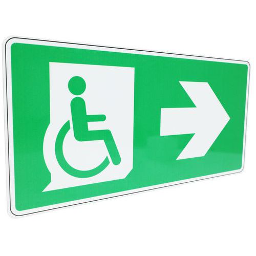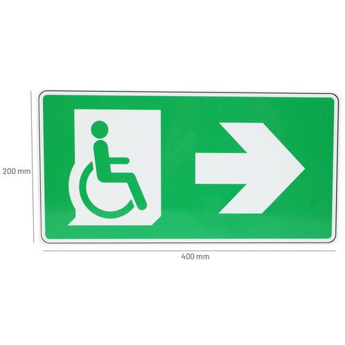 | Nombre del producto | Señal de salida para discapacitados con flecha a la derecha, Adhesivo: no, Rígido: sí, Norma ISO 7010: sí |