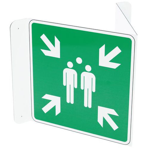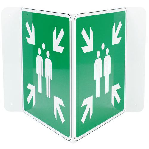 Fije un punto de encuentro y organice la evacuación de su personal con esta señal de evacuación en forma de V.