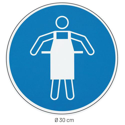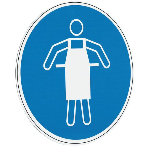 | Nombre del producto | Señal de obligación de uso de delantal de protección, Adhesivo: no, Rígido: sí, Norma ISO 7010: sí |