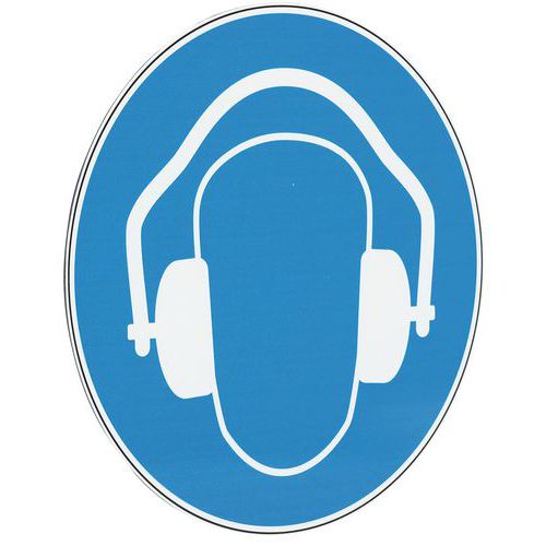 - Señal con pictograma comprensible para todos: Obligación de usar protección auditiva.