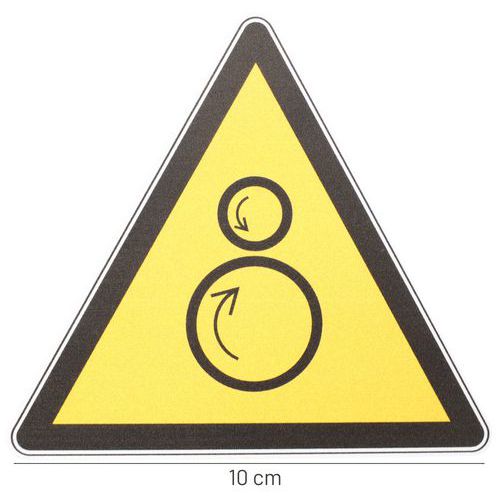| Nombre del producto | Señal de peligro: Rodillos contrarrotativos, Adhesivo: no, Rígido: sí, Norma ISO 7010: sí |