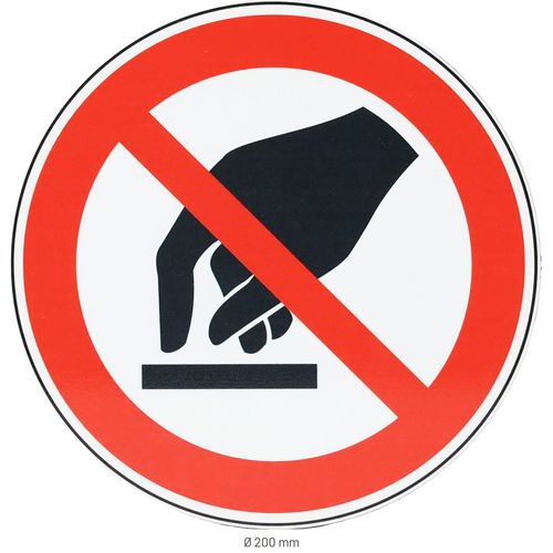 | Nombre del producto | Señal de prohibición de tocar de aluminio, Adhesivo: no, Rígido: sí, Norma ISO 7010: sí, Material: Aluminio |