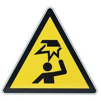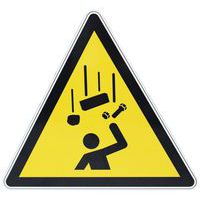 El riesgo de caída de objetos no es insignificante en términos de seguridad para empleados y visitantes, así que advierta de este panel de señalización con un pictograma comprensible para todos.