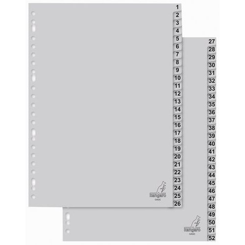 Separador ecológico con índice numérico, N.º divisiones: 52, Para formato: 210 x 297 mm (A4)