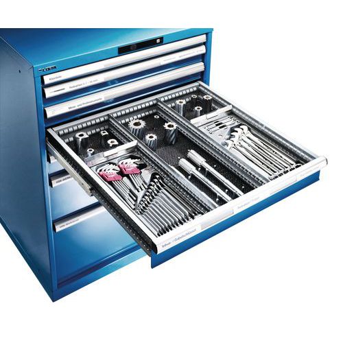 Paredes de ranuras y placas separadoras para cajones LISTA 102 cm. Asegura un orden sistemático en todos los sectores. Elementos adaptables para todas sus necesidades.