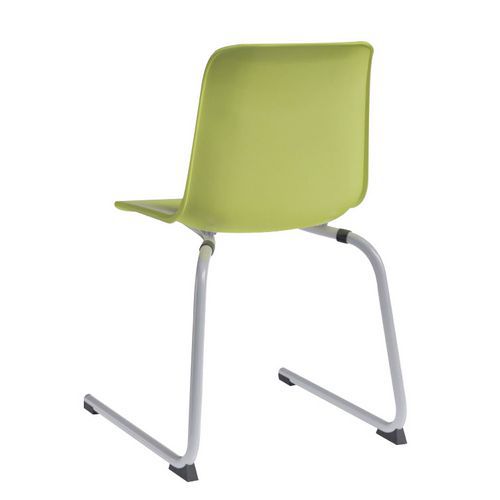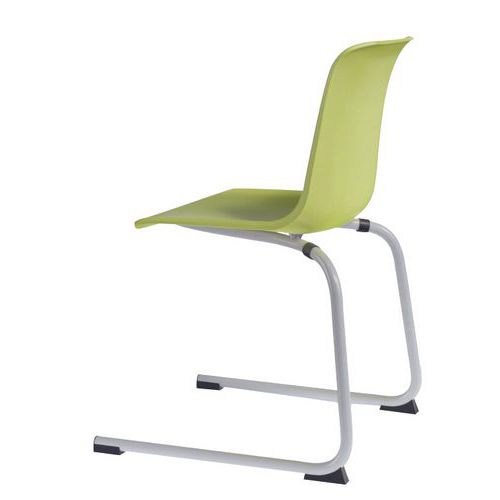 Silla con dos pies en forma de L. Estable y con soporte para pies. Cómodo respaldo.