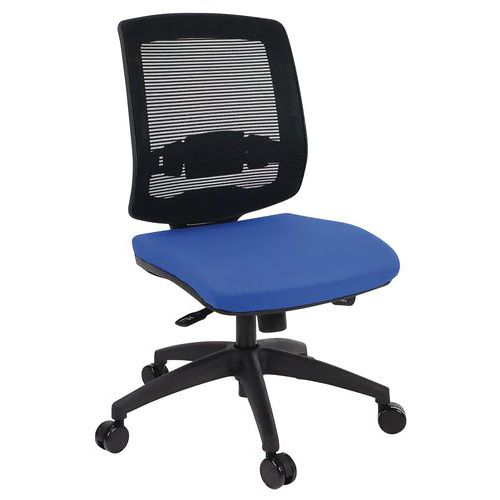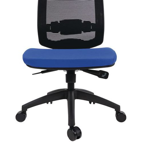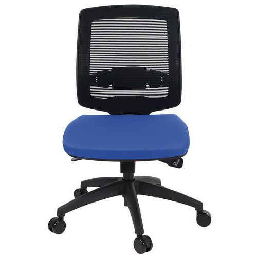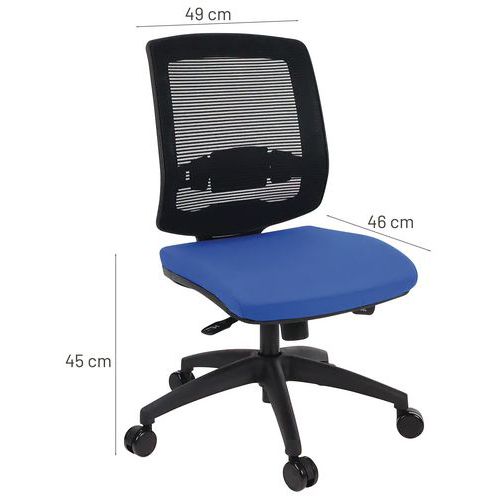 Silla de despacho con respaldo regulable. Respaldo de rejilla. Mecanismo síncrono. Soporte lumbar. Ideal para teletrabajo