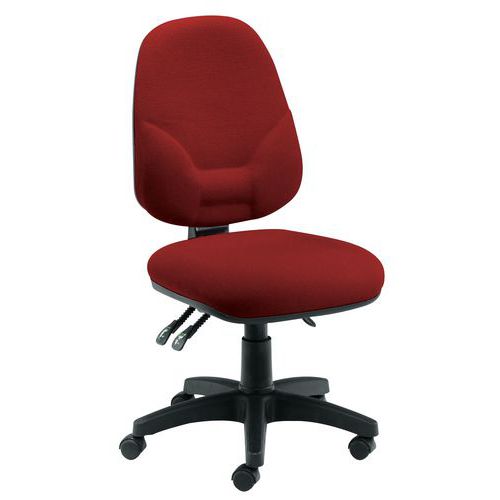 Altura del asiento regulable mediante un cilindro neumático para lograr una posición correcta de trabajo. Respaldo alto con soporte lumbar integrado para mayor comodidad. 100 % Pyratex™ (320 g/m²). Resistente al desgaste: 60 000 ciclos de Martindale (EN ISO 12947). Normas de protección contra incendios EN 1021-1 y EN 1021-2.