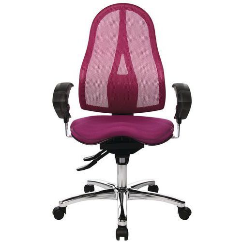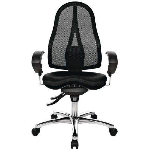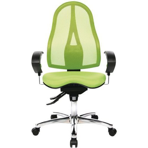 Silla de oficina ergonómica con ajuste de regulación de contacto permanente, en función del peso. Asiento Fitness-Ortho móvil en 3D con tecnología Sitness®, para una espalda más fuerte, mejor postura y mayor confort diario. Cilindro neumático para regular la altura y la profundidad del asiento. Respaldo de altura igualmente regulable para aportar mayor comodidad. Bloqueo del mecanismo en 3 posiciones distintas. Mayor comodidad con los reposabrazos ajustables a una altura de 26 a 32 cm.