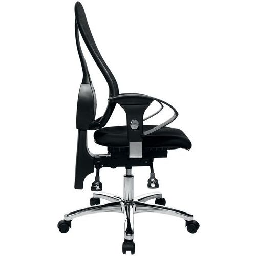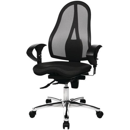 Silla de oficina ergonómica con ajuste de regulación de contacto permanente, en función del peso. Asiento Fitness-Ortho móvil en 3D con tecnología Sitness®, para una espalda más fuerte, mejor postura y mayor confort diario. Cilindro neumático para regular la altura y la profundidad del asiento. Respaldo de altura igualmente regulable para aportar mayor comodidad. Bloqueo del mecanismo en 3 posiciones distintas. Mayor comodidad con los reposabrazos ajustables a una altura de 26 a 32 cm.