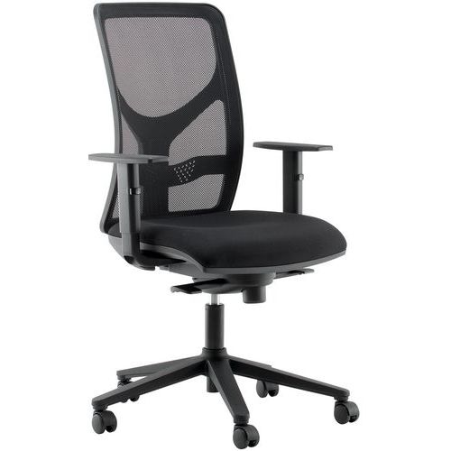 Silla de oficina muy cómoda con reposabrazos y respaldo de rejilla. Respaldo con soporte lumbar con altura regulable. Movimientos sincrónicos del asiento y del respaldo con bloqueo en 4 posiciones. Ideal para teletrabajo