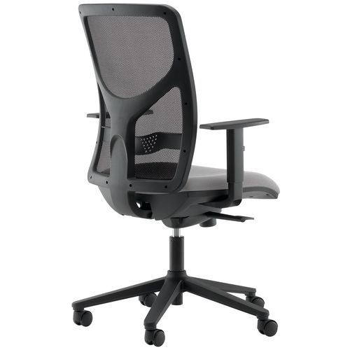 Silla de oficina muy cómoda con reposabrazos y respaldo de rejilla. Respaldo con soporte lumbar con altura regulable. Movimientos sincrónicos del asiento y del respaldo con bloqueo en 4 posiciones. Ideal para teletrabajo