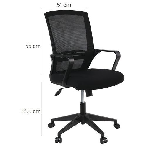 | Nombre del producto | Silla de oficina negra Elane, Con reposabrazos: sí, Tipo de pie: Ruedas, Asiento material: Paño, Cabezal: no |