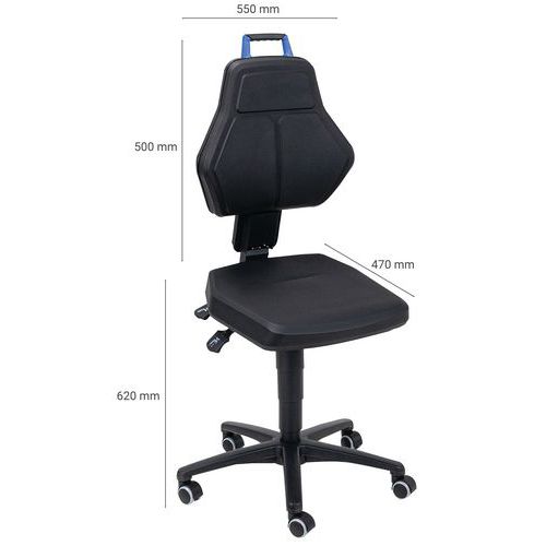 | Nombre del producto | Silla de taller baja con ruedas, Con reposabrazos: no, Tipo de pie: Ruedas, Asiento material: Poliuretano |