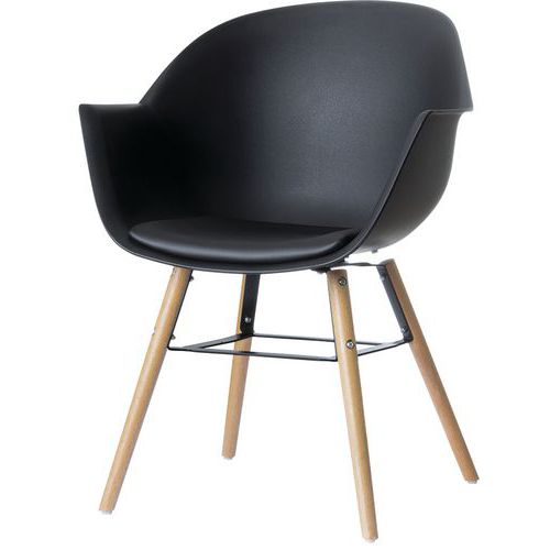 | Nombre del producto | Silla Wiseman haya con asiento negro, Con reposabrazos: sí, Tipo de patas: 4 patas, Tipo de pie: Pies |