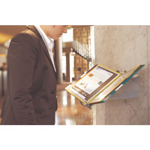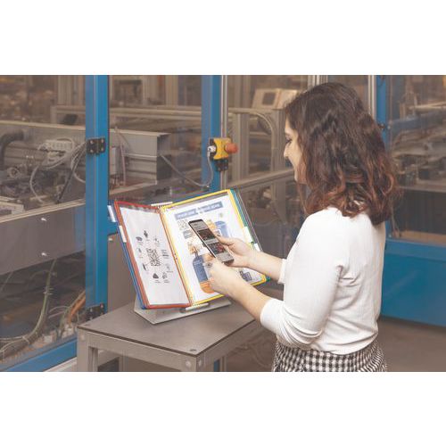 Este soporte mural le permite tener fácilmente a mano los documentos importantes. El soporte para escritorio mantiene sus documentos protegidos contra el polvo. Especialmente apto para un entorno industrial.
