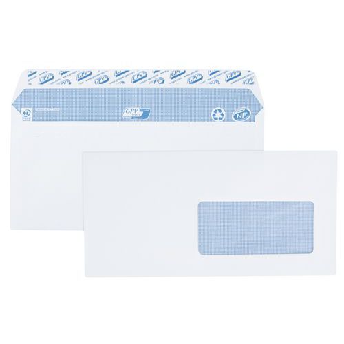 Sobre blanco con fondo azul para enviar su correo diario con total confidencialidad. Envío protegido gracias a su cierre autoadhesivo con banda de protección y pegado reforzado. Papel resistente de buena calidad.