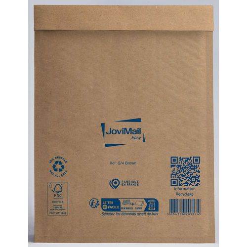 Sobres acolchados de película de burbujas Jovimail. Ideal para enviar productos frágiles. Reducción de los costes postales con sobres más ligeros que una caja de cartón. Absorción de impactos garantizada.