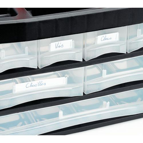 - Con un práctico portaetiquetas en los cajones transparentes.