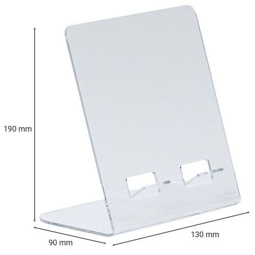 | Nombre del producto | Soporte acrílico de cristal para tabletas, Espesor: 3 mm, Material: Acrílico, Altura: 190 mm |
