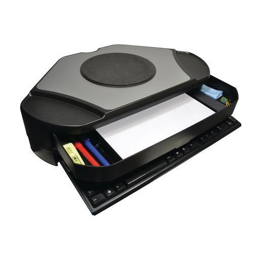 | Nombre del producto | Soporte de pantalla en ángulo, Modelo: Con cajón, Carga máx.: 15 kg, Color: Negro, Altura total: 13.5 cm |