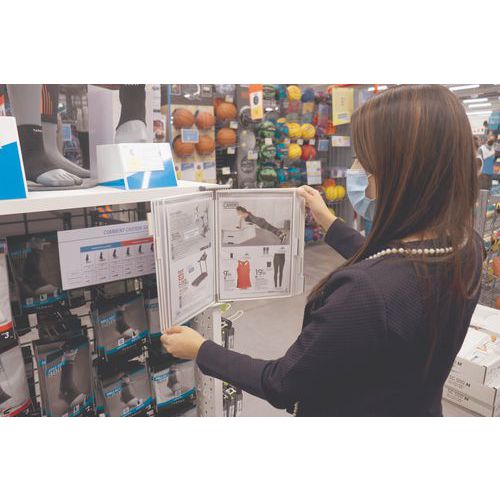 Kit de pared antimicrobiano con pivote para colocar documentos de forma higiénica. Funda de producto orgánico y natural, con iones de plata, que detiene gérmenes y bacterias. Soporte de pared con cuatro conectores para mantener las fundas y cinco grapas para indexar. Con 10 fundas pivotantes de PVC Sterifold antibacterianas con pivotes metálicos. Fabricado en la UE Garantía al cliente : 2 años