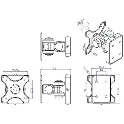 | Nombre del producto | Soporte mural giratorio para pantalla, Carga máx.: 15 kg, Tipo de fijación: Mural, Color: Negro |