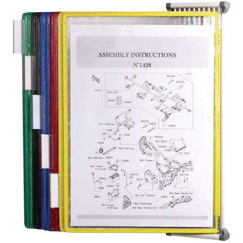 Adapte el soporte a sus necesidades, las posibilidades de ampliación son infinitas. El soporte mural se adapta perfectamente a cualquier espacio. Encuentre fácilmente sus documentos gracias a las pestañas de indexado de colores.
