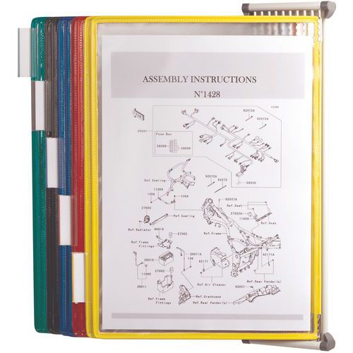 Soporte mural pivotante 10 fundas para formato A4, Material: Acero, Color: Surtido, Nº de fundas: 10 Soporte mural pivotante 10 fundas para formato A4, Material: Acero, Color: Surtido, Nº de fundas: 10