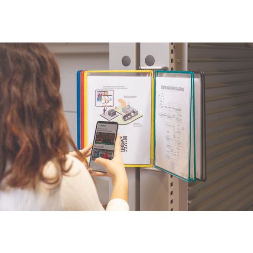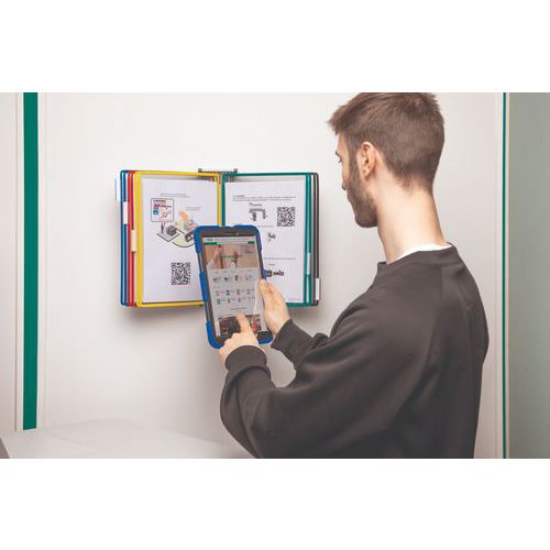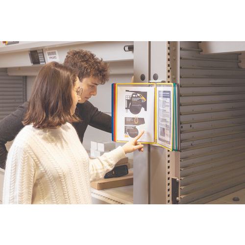 Adapte el soporte a sus necesidades, las posibilidades de ampliación son infinitas. El soporte mural se adapta perfectamente a cualquier espacio. Encuentre fácilmente sus documentos gracias a las pestañas de indexado de colores.
