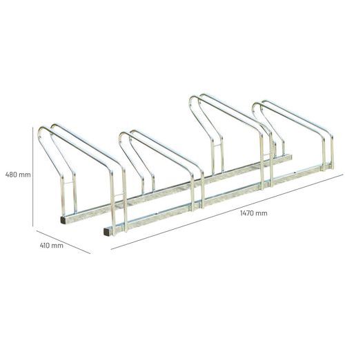 Soporte aparcabicicletas, Longitud total: 1470 mm, Nº de plazas: 4, Modelo: Lado a lado, Fondo total: 410 mm Soporte aparcabicicletas, Longitud total: 1470 mm, Nº de plazas: 4, Modelo: Lado a lado, Fondo total: 410 mm