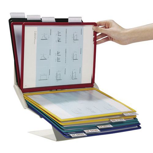 | Nombre del producto | Soporte para escritorio o mural Vario Pro, Material: Acero, Nº de fundas: 10, Funda color: Surtido |