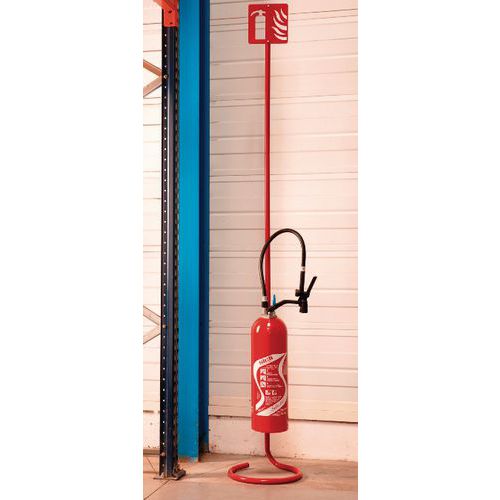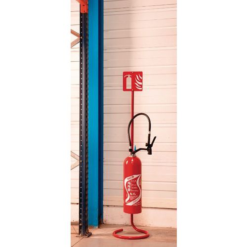 | Nombre del producto | Soporte de pie para extintor de incendios, Color: Rojo, Tubo Ø: 25 mm, Distancia entre ejes: 300 mm |