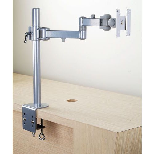| Nombre del producto | Soporte para pantalla de altura ajustable, Carga máx.: 13 kg, Tipo de fijaciones: Pinza en C, Color: Plata |