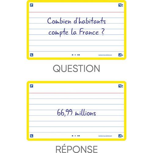 Tarjetas Bristol Flash 2.0 75x125 mm con líneas, para repaso. Escriba una pregunta en el anverso y la respuesta en el reverso de sus tarjetas Flash 2.0. Utilice el método pregunta/respuesta para memorizar la mayor cantidad de información posible. Compruebe sus conocimientos con regularidad para reactivar su memoria y asimilarlos a largo plazo. Scribzee® es una aplicación gratuita para escanear, guardar y organizar sus tarjetas Flash 2.0. Gracias a un marco de colores para cada tema, podrá clasificar y localizar sus tarjetas por temas o materias.