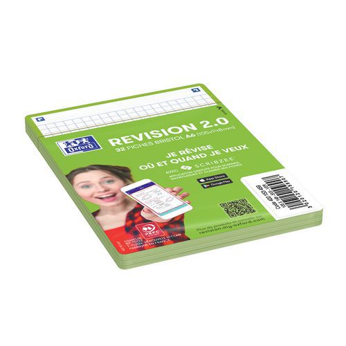 Tarjetas Bristol Revision 2.0 Oxford A6 Q5x5 con marco compatibles con la aplicación Scribzee. Scribzee® es una aplicación gratuita para escanear, guardar y organizar las tarjetas en su smartphone. Marcos de un color por materia para permitirle clasificar y localizar mejor sus tarjetas por tema o materia. Ideal para organizar las tarjetas en el smartphone sin perder tiempo. Esquinas redondeadas para que las fichas no se doblen.