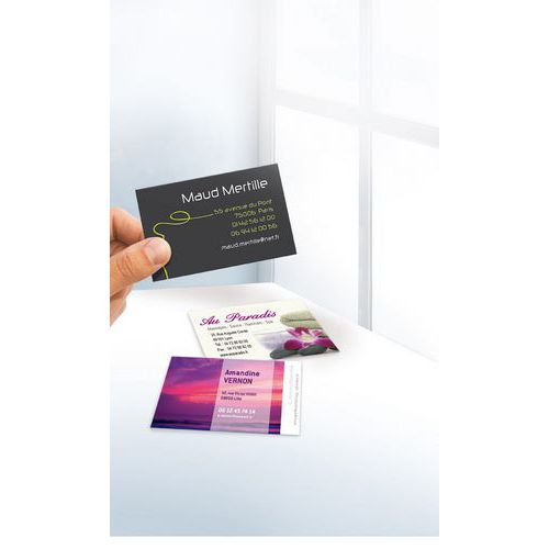 | Nombre del producto | Tarjetas de visita, Gramaje: 185 g/m², Altura: 54 mm, Nº de piezas: 250, Ancho: 85 mm |