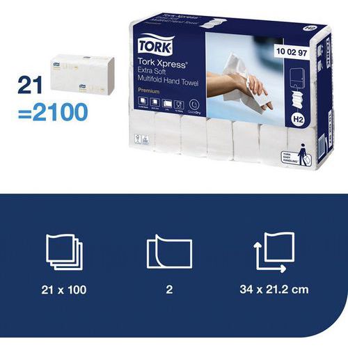 Toallitas de papel Premium H2 de plegado cruzado - Tork