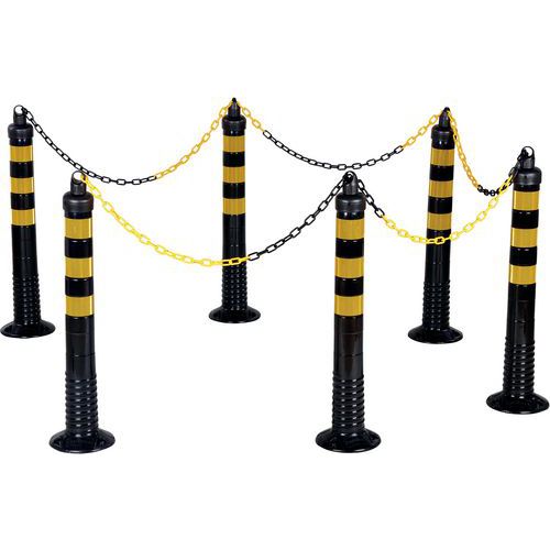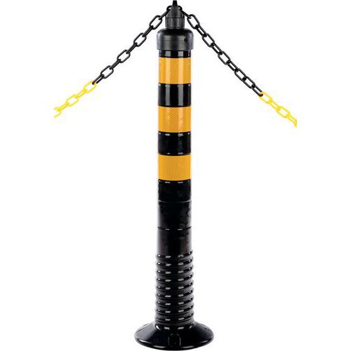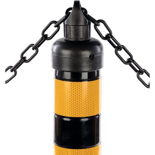 Tope de protección de acero resistente para proteger equipos o máquinas de posibles golpes de equipos de manipulación de materiales. Buena visibilidad gracias a su diseño bicolor amarillo/negro. Adecuado para uso en interiores y exteriores. Galvanizado y con revestimiento de polvo. Certificado TÜV.