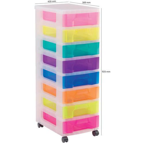 Ladeblok montada sobre 4 ruedas para una capacidad de manejo máxima. Cajones transparentes para una visibilidad mejor del contenido. Herméticos para una protección máxima contra el polvo. Contorno con zonas granuladas en el lateral para un etiquetado fácil. Fabricado en el UK